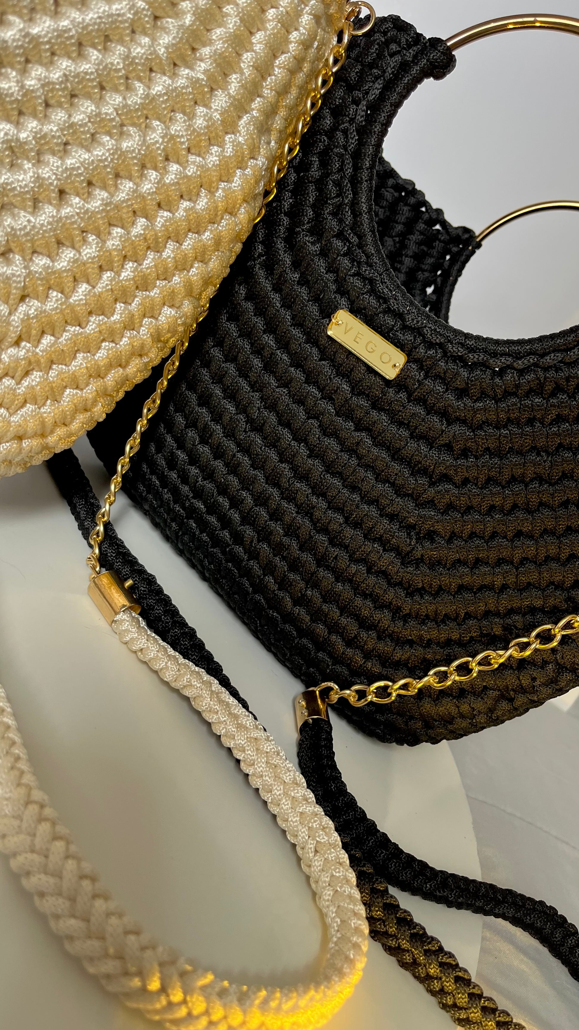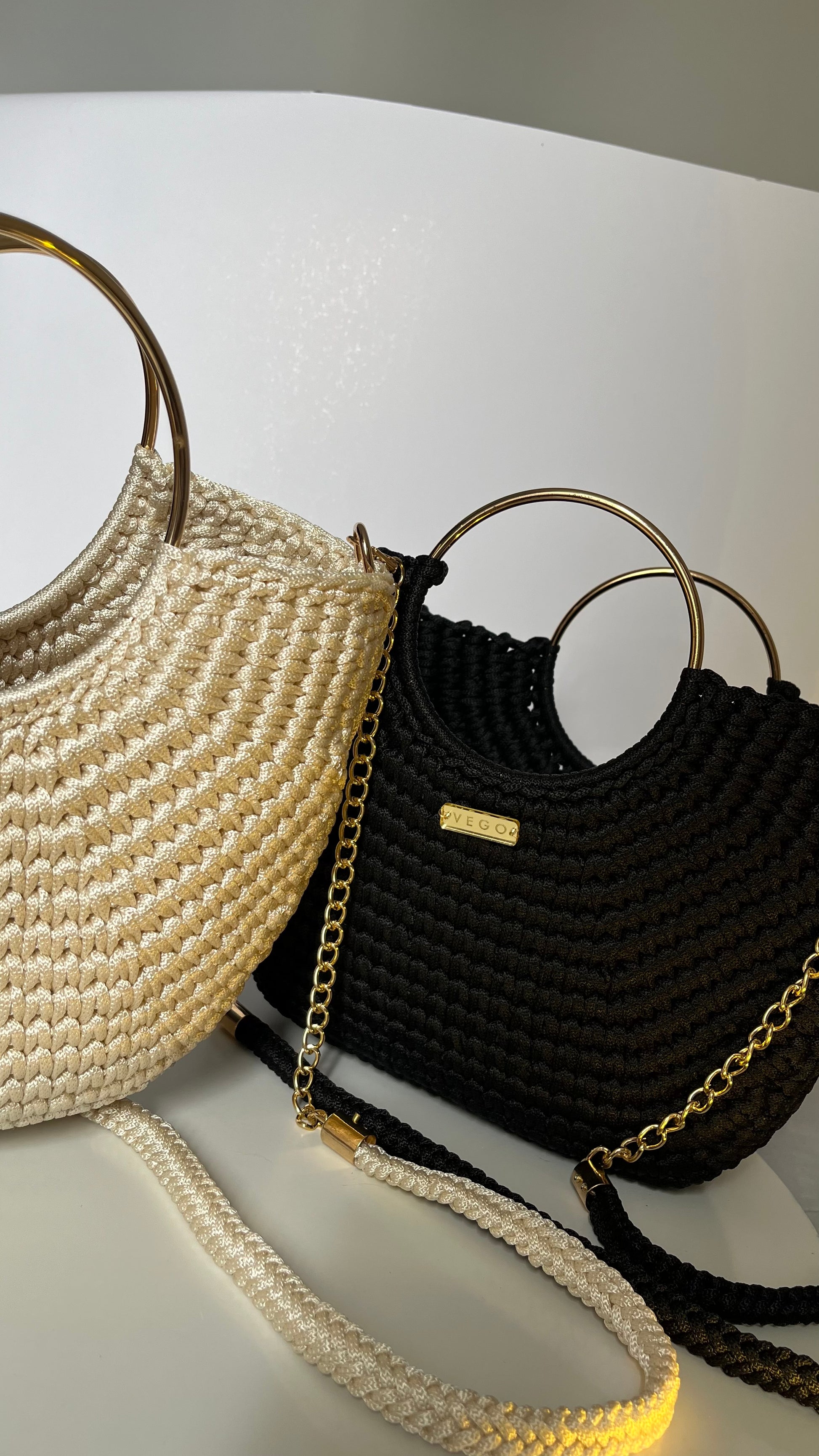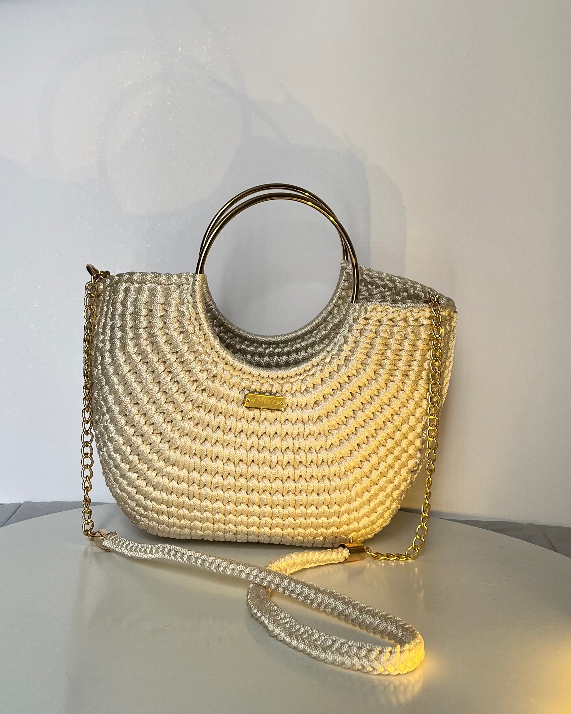 Bolso de mano con asas metálicas y tejido en crochet. Adecuados para oficinas, trabajo, negocios, viajes y salidas.